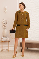 Детали: жакет полуприлегающего силуэта, талиевые вытачки, пиджачный воротник, застежка на две петли и пуговицы, функциональные карманы, рукава и спинка со шлицами, жакет на подкладке из 100% вискозы. Брюки с высокой посадкой, притачной пояс со шлевками, задняя часть пояса эластичная- с резинкой, застежка на молнию и пуговицу, боковые карманы, передние половины с двумя складками
