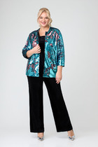Длина жакета по спинке около 68/71 см, длина рукава около 61 см. Длина брюк по боковому шву с поясом около 113/114,5 см.