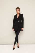 Костюм-двойка из прямого жилета и широких брюк со стрелками.
