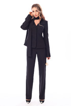 Детали: прилегающий силуэт, асимметричный крой, фигурный вырез горловины переда и спинки, без застежки. Юбка прямого силуэта, пояс на резинке, спинка с высоким разрезом. Юбка на трикотажной подкладке.