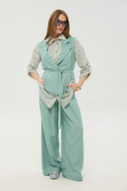 Длина жакета по спинке около 71 см в размерах 40-46 и около 72 см в размерах 48-52, длина рукавов около 62 см. Длина юбки по боковому шву с поясом около 46 см в размерах 40-46 и около 49 см в размерах 48-52 см