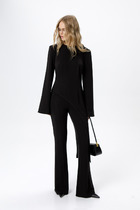 Трикотажный костюм-двойка из асимметричной туники и облегающих брюк-клеш.