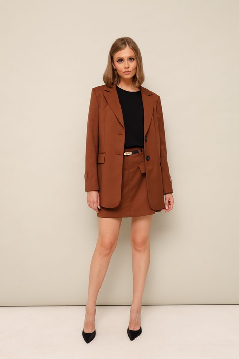 Стильный 2-предметный комплект, состоящий из жакета и юбки-шорт. Комплект выполнен из качественной костюмной ткани.