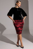 Юбка-шорты в длине мини, на обтачке по поясу спереди и с притачным поясом по спинке. На переднем полотнище обработаны клапаны, имитирующие карманы. Застежка в боковом шве на потайную тесьму-молнию. По низу рукавов жакета и в юбке-шортах по линии талии предусмотрены шлевки.