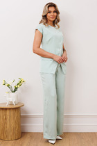 Стильный 2-предметный костюм, состоящий из жилета и шорт, выполнен из натурального льна. Жилет актуального прямого силуэта с центральной застежкой на петли и пуговицы. В рельефных швах спинки обработаны завязки для регуляции прилегания жилета. Шорты с притачным поясом на резинке и боковыми наклонными карманами. Спереди шорт - имитация гульфика.