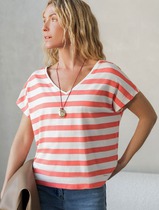 Футболка в полоску с V-вырезом и цельнокроеным рукавом из премиального хлопка