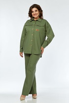 Комплект, состоящий из жилетки и брюк. Жилетка полуприлегающего силуэта, длиной ниже линии бедер. Спинка со средним швом, с рельефами от пройм до низа. Перед с нагрудной вытачкой, рельефом и прорезным карманом с клапаном и обтачками. На левом переде, в области груди обработан карман-обманка с листочкой. Воротник пиджачного типа с лацканом. Застежка на петлю и пуговицу. Жилетка на подкладке. Брюки укороченные, длиной выше щиколотки, прямого силуэта, на притачном поясе с резинкой по спинке. По задним половинкам талиевые вытачки. По передним половинкам заложены односторонние складки, обработаны боковые карманы с наклонным входом, и застежка на тесьму-«молнию» с гульфиком и откоском. По поясу застежка на петлю и пуговицу. По поясу вставлены шлевки.