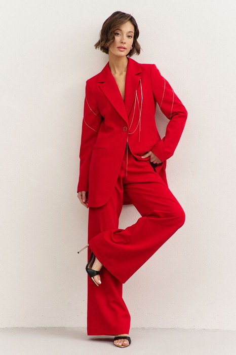 - жакет дополнен съемным декором с цепочками.