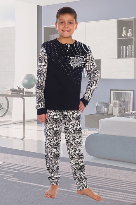 Костюм детский комбинирваный. Полочка и спинка у кофточки выполнены из трикотажного полотна интерлок, на передней части присутствует планка с кнопками и принтом. Рукова и брюки выполнены из футера 2-х нитки с лайкрой. Низ изделий брюк и рукавов отделан манжетом. Эта модель подходит как для отдыха, так и для дома
