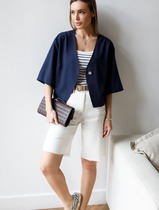 Кардиган прямого силуэта с цельнокроеным рукавом. Воротник отложной с кулисой. Перед оформлен контрастными вставками и накладными карманами с клапаном. Манжета отложная из отделочной ткани с принтом. В боковых швах разрезы.
