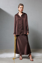 Блузка свободного силуэта со спущенной линией плеча и фигурной линией низа. По переду мягкая складка и декоративный пояс. Спинка со средним швом. Рукав втачной длиной 3/4 , по низу рукава мягкие складки и декоративная пата.