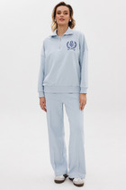 Брюки свободного прямого кроя на притачном поясе с эластичной тесьмой. По переду карманы с отрезным бочком.