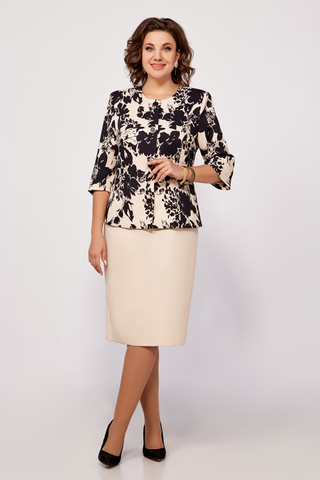Костюм Swallow 797 бежевый/принт черные цветы