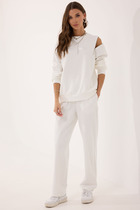 Брюки прямые. По боку подрезной лампас с отделочной строчкой и карманы. Пояс притачной , по переду гладкий, дальше с резинкой по кругу.
