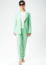Комплект женский, 2х предметный, состоящий из блузки и юбки. Блузка полуприлегающего силуэта с цельнокройным рукавом длинной 3/4. Выполнена из трикотажного полотна "ТЕНСЕЛ". Вырез горловины "лодочка" По низу блузки, слева, декоративный элемент из рюши, в сочетании двух видов ткани. По спинке средний шов. Юбка широкая к низу, из текстильной ткани "вуалька" На подкладке. Пояс притачной с резинкой по кругу.