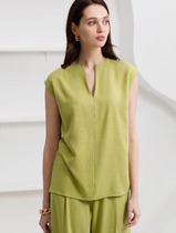Блуза прямого силуэта с рукавом длинной 3/4. Рукав со спущенной линией плеча. По низу рукава планка, с отлетными деталями из отделочной ткани (вуалька). Горловина круглой формы с отделочной планкой и кантом.