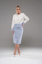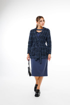 Жакет прямого силуэта, с рукавом длинной 3/4. Рукав со спущенной линией проймы. По плечевым и боковым швам узкие вставки. Воротник рубашечный. Застежка центральная, с отрезной планкой, на петли и пуговицы. По низу так же отрезная планка.
