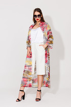 Длина жакета от центра горловины спинки до низа: в 52-56 р-рах — 61,5 см; в 58-64 р-рах — 63,5 см. Длина рукава: 62,5 см. Длина юбки по боковому шву без учёта пояса: в 52-56 р-рах — 62 см; в 58-64 р-рах — 64,5 см.