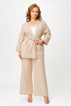 Брюки - из полотна с набивным рисунком, длинные, на притачным поясе с эластичной тесьмой внутри, и карманами в боковых швах. Входы в карманы окантованы основным материалом.