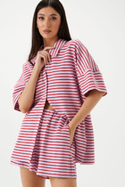 Костюм женский из гладкокрашеного трикотажного полотна футер-двунитка, состоящий из футболки и брюк. Футболка – классического покроя, с короткими втачными рукавами и горловиной овальной формы, обработанной втачной планкой. В нижней части полочки слева настрочен декоративный элемент прямоугольной формы.Брюки – длиной 7/8, слегка зауженные книзу, на притачном поясе с эластичной тесьмой внутри и карманами в боковых швах. Передние половины брюк застрочены по линиям центра вдоль на 0,3 см.