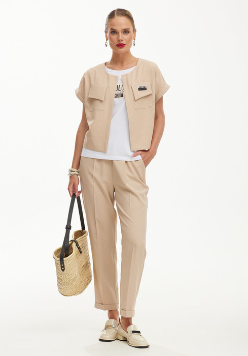 Комплект состоит из жакета, брюк и футболки. Стильный и удобный комплект, который подходит как для повседневной носки, так и для особых случаев. В нем Вы будете выглядеть стильно и уверенно.