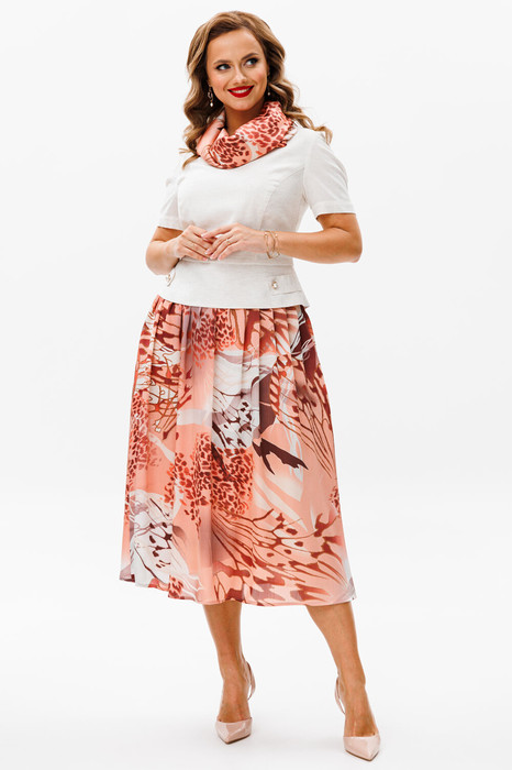 Стильная блуза в сочетании с юбкой создают элегантный и женственный образ. Комплект женский 2-х предметный, состоящий из блузки, выполненной из костюмно-плательной ткани, юбки и съемного шарфа из плательной ткани.