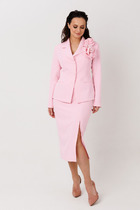 Костюм, состоящий из шорт с прорезными карманами в боковых швах и майки на бретельках с отрезным лифом. На майке с левой стороны внизу расположена печатьТкань: кулирка