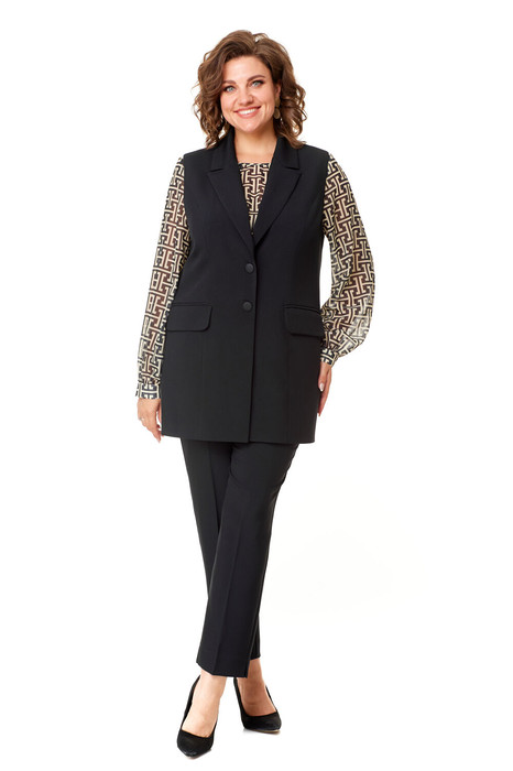 Комплект женский, состоит из жилета, брюк и блузки.