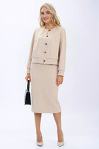Жакет свободного покроя с естественной линией плеча. Рукав втачной одношовный длиной 3/4 с манжетой из отделочной ткани "пайетки". Перед выполнен из отделочной ткани "пайетки" на атласной подкладке. Обработаны отрезные планки. Застежка центрально-бортовая на петли пуговицы. Воротник отложной типа "шаль". На переде выполнены накладные карманы.
