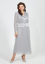 Блуза свободного прямого силуэта, с округлой формой горловины, линия плеча спущенная с отложной манжетой по низу фиксируется декоративной пуговицей в качестве отделки. Спинка в блузе с отрезной кокеткой из отделочной ткани ришелье, на просвет, декоративной застёжкой на петли пуговицы. Низ в блузе ассиметричный с разрезами в боковых швах и пришивным декоративным элементом по низу переда. Юбка  выполненная в трапециевидном силуэте, плавно ниспадает от талии, создавая ощущение легкости и свободы. Юбка из ришелье добавляет текстуру и эффектный контраст с однотонным верхом. Верхняя часть юбки с отрезной кокеткой, вставкой венгерки по задней детали, декоративными шлёвками и шнуром от боковых швов. В боковом шве юбки застёжка на потайную тесьму-молнию. По низу юбки притачной волан с разведением  и декоративными разрезами по переду. Обращаем Ваше внимание, что фурнитура может незначительно отличаться от фото. Длина блузки  59 см(р.50-54) 59,5 см (р.56-60), длина рукава(плеча) 25,5 см(р.50-54), 28,5 см (р.56-60) . Длина юбки 84  см.