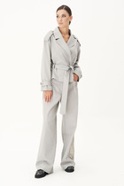 Костюм Magia mody 2623 серо-бежевый в бирюзовую полоску