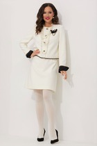 Костюм женский, состоящий из жакета и юбки. Жакет полуприлегающий, однобортный с акцентом на ровную линию плеч, с цельнокроеными лацканами и застёжкой на декоративные пуговицы по краю борта. По переду жакета талиевые вытачки и накладные карманы фигурной формы.  Рукав втачной, двухшовный, длиной 3/4 с отлетной шлицей в шве и отделкой в виде декоративных пуговиц. Спинка со средним швом и талиевыми вытачками. Жакет на подкладке.Юбка-карандаш идеально дополняет жакет, обрисовывая стройные линии. Юбка прямого силуэта, заужена к низу, с притачным поясом со вставкой эластичной тесьмы в боках пояса, что обеспечивает удобную посадку на фигуру. В среднем шве юбки застёжка на тесьму молнию, от низа отлетная шлица. Юбка на подкладке. Обращаем Ваше внимание, что фурнитура может незначительно отличаться от фото. Длина жакета по спинке 60 см (р 52-56), 60,5 см (р 58-62), длина рукава 51 см. Длина юбки 76 см.