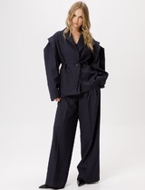 Юбка прямого силуэта, на подкладке. В боковых швах юбки имеются разрезы.