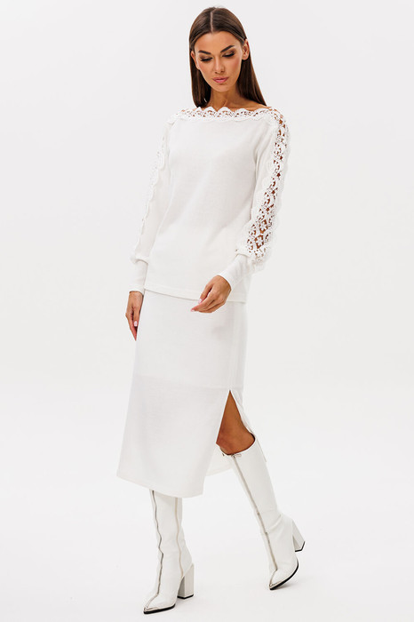 Рукав втачной с притачной манжетой. Отделочным элементом джемпера является кружево.