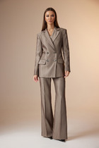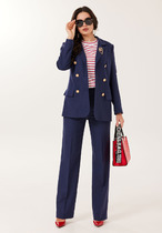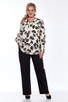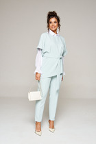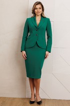 Костюм женский из плотного гладкокрашеного трикотажного полотна "кулирка", состоящий из футболки и шорт. Футболка - свободного покроя, с удлиненными плечевым и швами, короткими втачными рукавами и горловиной овальной формы, обработанной втачной планкой. В нижней части переда слева настрочен декоративный элемент прямоугольной формы. По горловине проложена отделочная строчка. Шорты - классического покроя, на притачном поясе с эластичной тесьмой внутри и карманами в боковых швах. Для регулирования степени прилегания шорт по талии в пояс вставлен шнурок, продетый через два отверстия в соединительных швах в центре пояса.