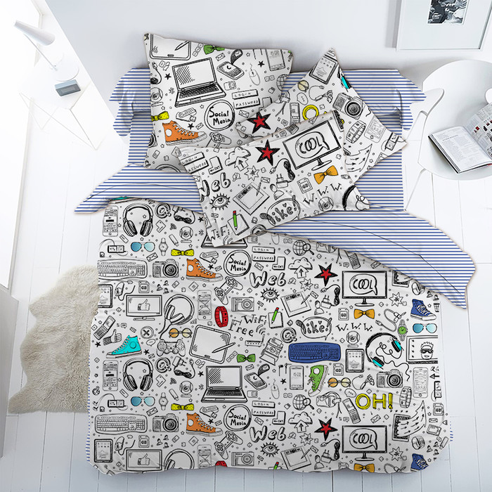 1,5 спальный:Пододеяльник 147х215, простынь 147х215, наволочки 50х70-2 шт