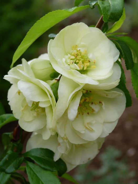 Раскидистый кустарник высотой от 1 до 2 м. Растет быстро. Долговечна. Листья узкие, ланцетные, светло-зеленые. Цветет в мае одновременно с распусканием листьев. Цветки белые, махровые, 3-4 см в диаметре, собраны в кисти по 2-6 шт. Плоды съедобные, созревают в начале октября. Хорошо переносит стрижку. Морозостойка