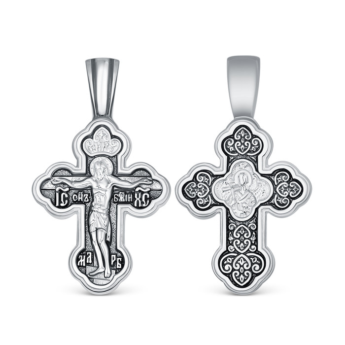 Совместные покупки Нижний Тагил Ювелирные украшения и бижутерия Подвески — Крест двусторонний из чернёного серебра - Спаситель, Ангел-Хранитель 3,1 см Г-16