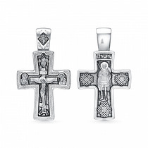 Крест из чернёного серебра с фианитами - Лики святых 5,5 см