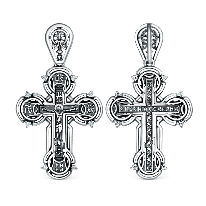 Совместные покупки Нижний Тагил Ювелирные украшения и бижутерия Подвески — Крест из чернёного серебра с фианитами - Спаси и сохрани, 4 см ПР-151ч