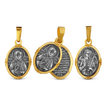 Подвеска двойная из чернёного серебра с лимонным золочением - святая Матрона, Ан