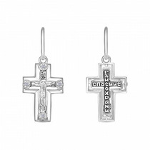 Крест с фианитом родированный серебро 925*