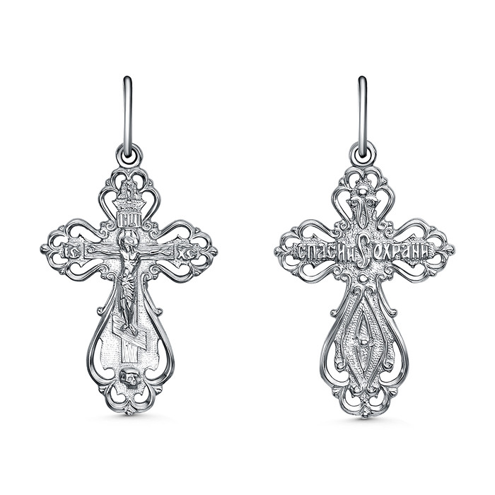 Совместные покупки Нижний Тагил Ювелирные украшения и бижутерия Подвески — Крест из серебра родированный - 3,3 см 925 пробы К3-497р