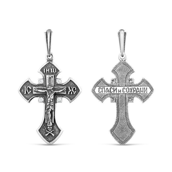Совместные покупки Нижний Тагил Ювелирные украшения и бижутерия Подвески — Крест из серебра с чернением и фианитами - 5,2 см 925 пробы к3-002ч200