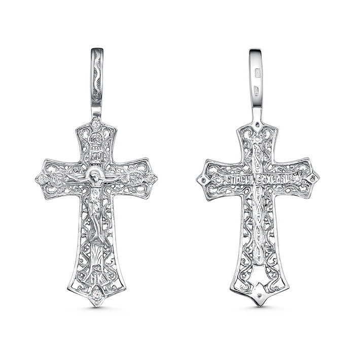 Совместные покупки Нижний Тагил Ювелирные украшения и бижутерия Подвески — Крест из серебра с фианитами родированный - 4 см 925 пробы 2-162р