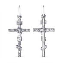 Крест православный из серебра родированный - Спаси и сохрани 3,3 см 925 пробы 2-