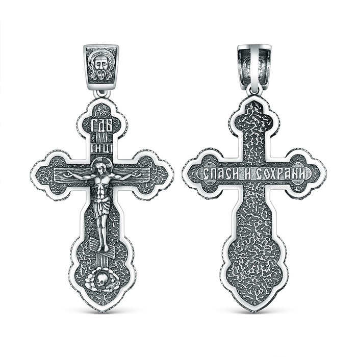 Совместные покупки Нижний Тагил Ювелирные украшения и бижутерия Подвески — Крест православный из чернёного серебра - Спаси и сохрани 4,4 см ПК-017-2ч