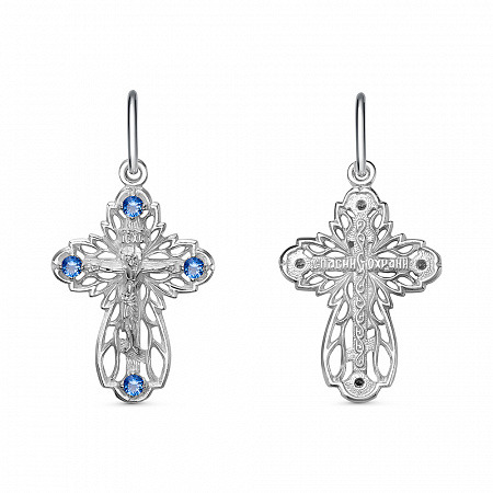 Крест с фианитом родированный серебро 925*