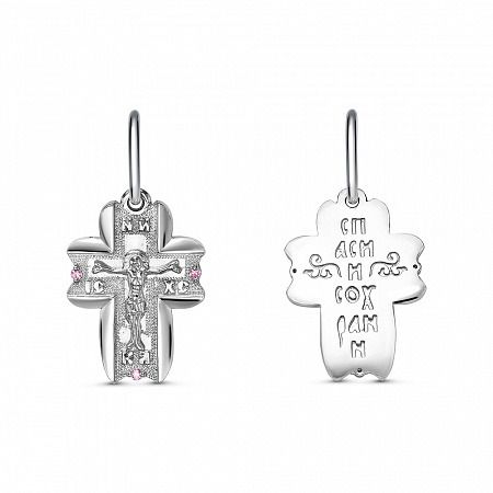 Крест с фианитом родированный серебро 925*