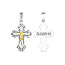 Крест православный из чернёного серебра с лимонным золочением - Спаси и сохрани,